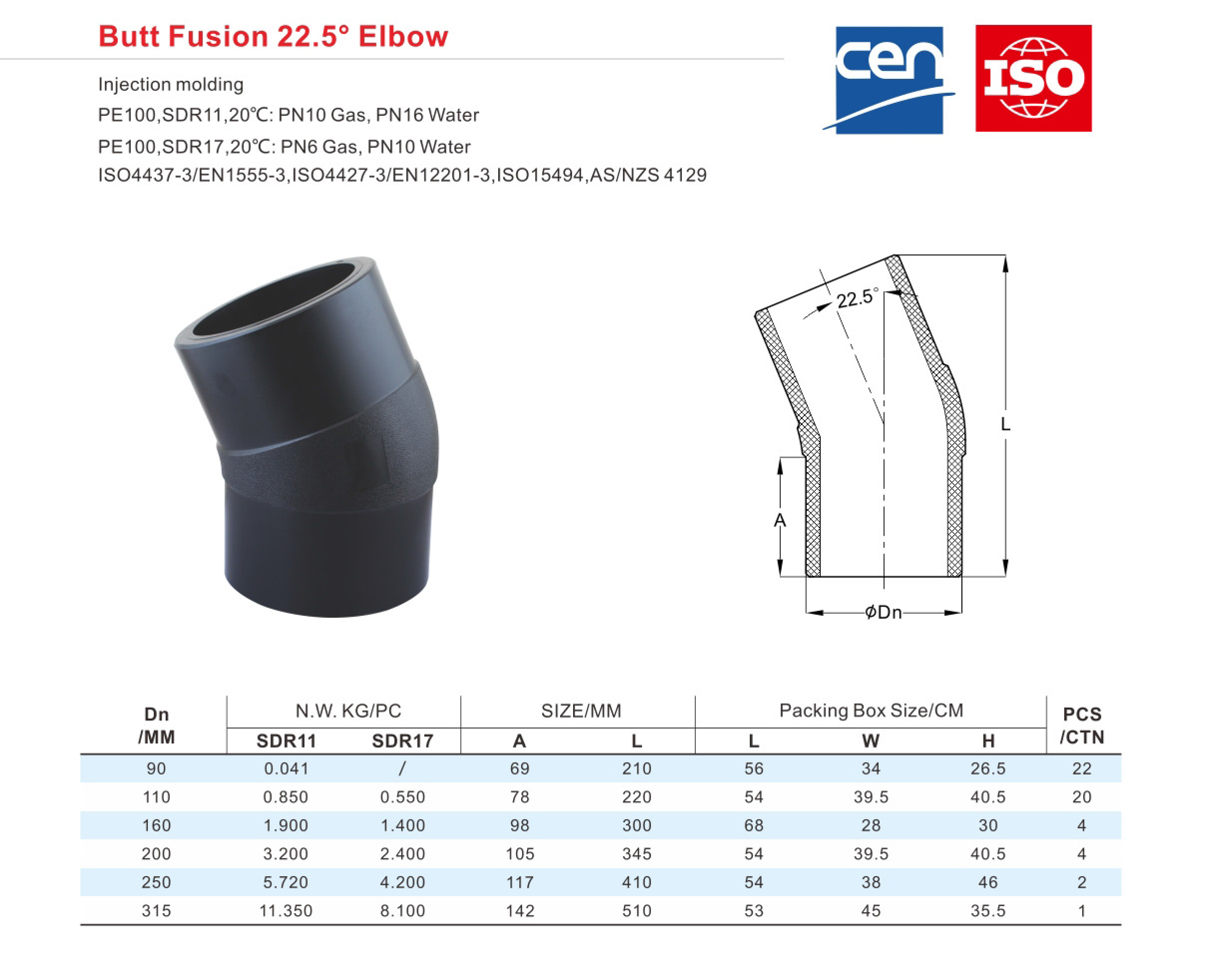 Butt Fusion 22.5 ° Elbow