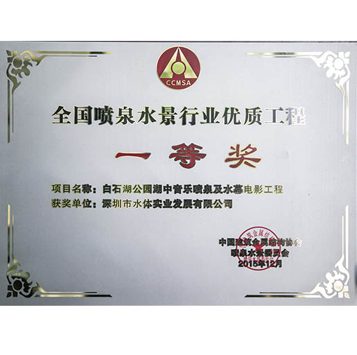 水體集團(tuán)憑借雄厚的實(shí)力,一流的技術(shù),獨(dú)特的藝術(shù)魅力,取得了眾多驕人的業(yè)績(jī),在國(guó)內(nèi)外享有較高的聲譽(yù),曾獲得了中國(guó)建筑景觀水景噴泉十佳知名品牌、全國(guó)噴泉行業(yè)優(yōu)質(zhì)工程一等獎(jiǎng)、全國(guó)噴泉水景行業(yè)突出貢獻(xiàn)企業(yè)、全國(guó)環(huán)境藝術(shù)優(yōu)秀企業(yè)、中國(guó)水景噴泉行業(yè)“重合同、守信用知名品牌”企業(yè)、第五屆國(guó)際園林景觀規(guī)劃設(shè)計(jì)大會(huì)年度優(yōu)秀景觀設(shè)計(jì)機(jī)構(gòu)獎(jiǎng)、AAA級(jí)信用企業(yè)等殊榮。