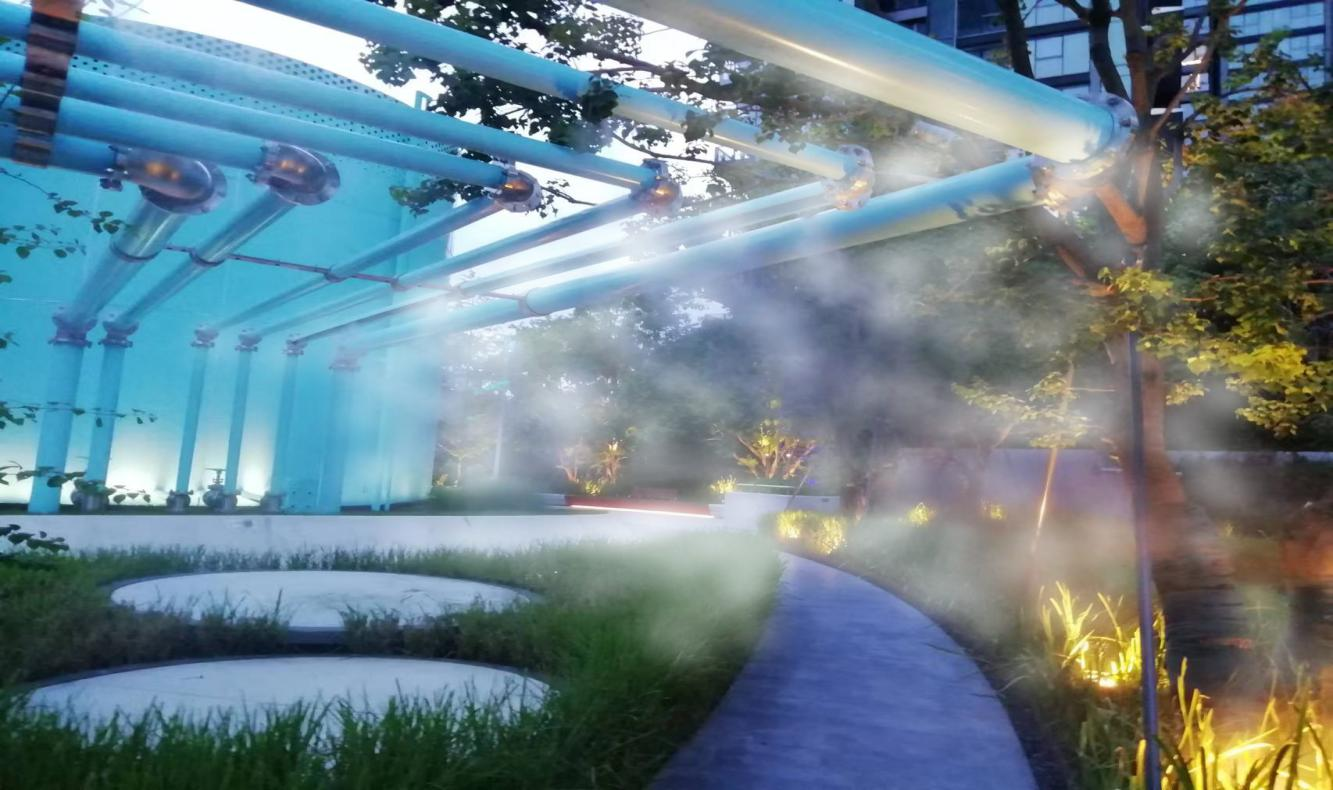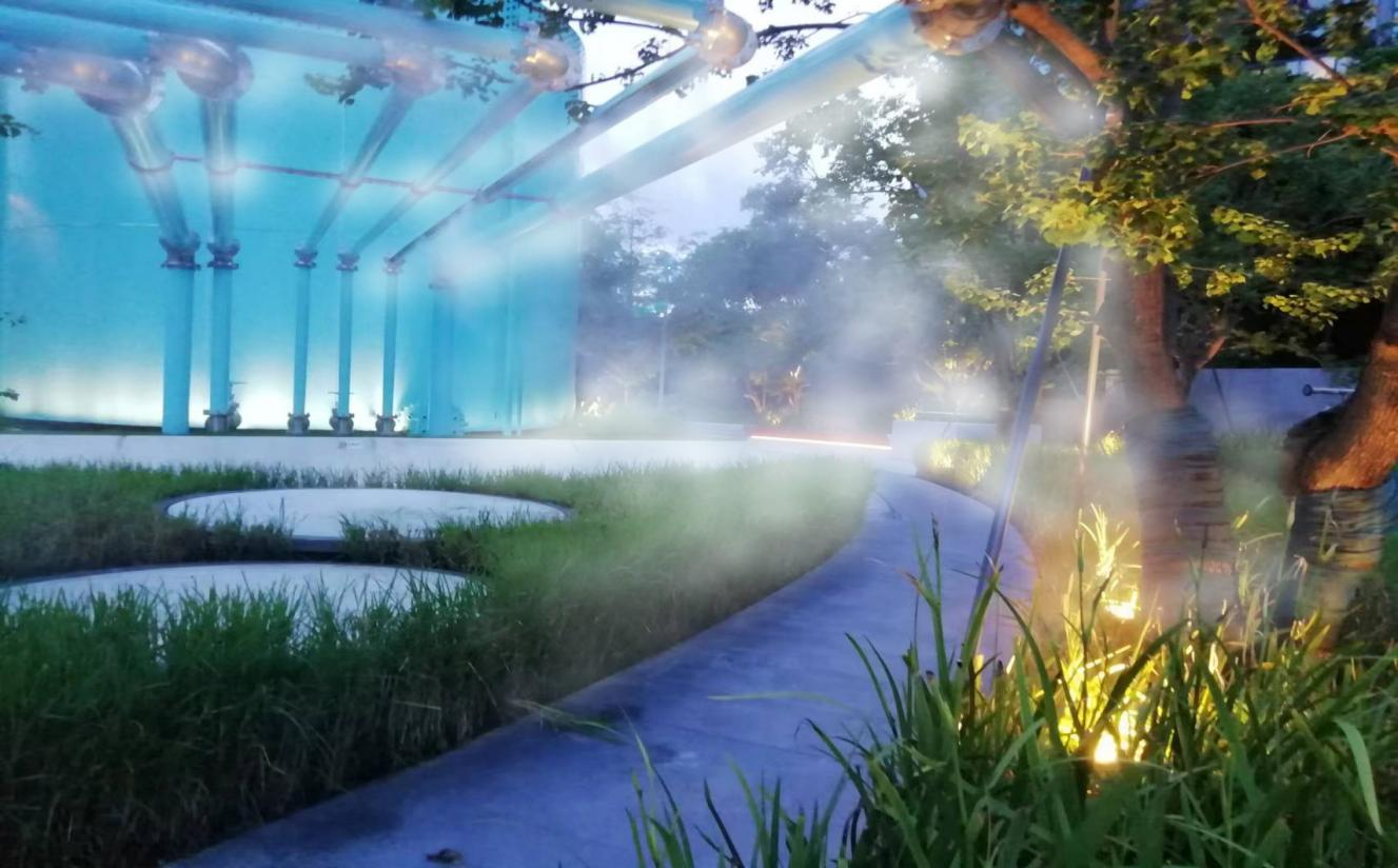景觀、雕塑與水景是現(xiàn)代園林景觀不可缺少的元素,如果再加入那若隱若現(xiàn)的霧景,會(huì)讓人們萌生出濃厚的神秘感。置身于茫茫霧海中,加以光影映襯,幻化七彩迷人景觀,如臨夢(mèng)幻般美妙絕倫的仙境,同時(shí)呼吸著濕潤(rùn)新鮮的空氣,讓人真正體驗(yàn)到回歸自然般的心曠神怡。