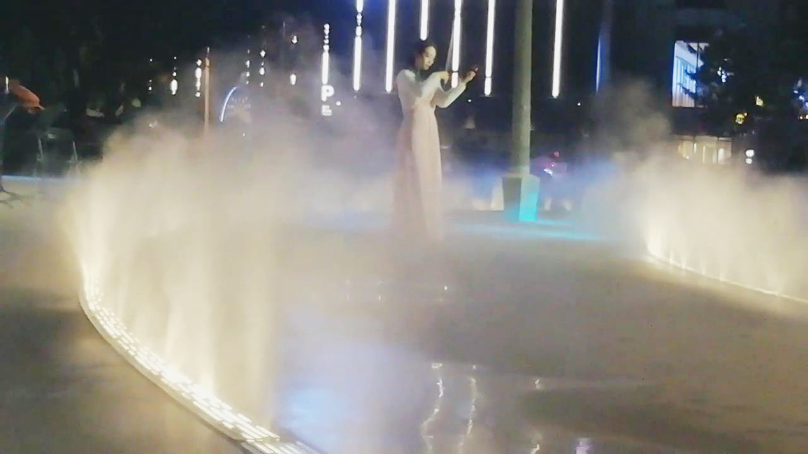 霧屏是多媒體展示產(chǎn)品,是通過(guò)使用超聲集成霧化發(fā)生器產(chǎn)生大量微粒霧,結(jié)合空氣流動(dòng)學(xué)原理而制造出來(lái)的能產(chǎn)生形成平面霧氣的屏幕。霧屏系統(tǒng)利用微粒霧平面特性作為光路載體,再將特制的流暢生動(dòng)的媒流體投射在該載體上便可以在空間中形成虛幻立體的影像,形成一種三維空間立體圖像,給人一種新的立體視覺(jué)享受。真人可進(jìn)入霧屏畫(huà)面的虛幻效果,是一種新型的以霧為媒體的獨(dú)特創(chuàng)新水景。