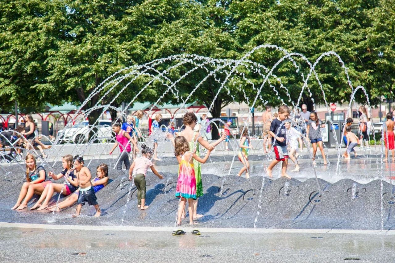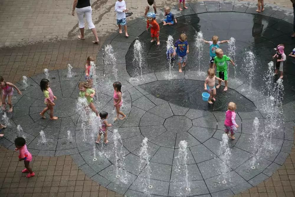 旱式噴泉同樣吸引著小孩子們。旱式噴泉,也叫隱藏式噴泉,這種噴泉的水池藏在廣場地板的下面,在噴水時,噴出的水柱通過蓋板或花崗巖等鋪裝孔噴出來,從而達到既不占休閑空間又能觀賞噴泉的效果,同時不表演的時候,即為正常的廣場場地?,F在,互動式旱噴泉越來越受歡迎,因為其允許游人進入水效范圍內嬉戲。同時新技術的應用,即24V/DMX512低壓水泵,無疑為喜愛噴泉水景藝術的人們帶來歡樂的同時,也做到了最安全的保證。